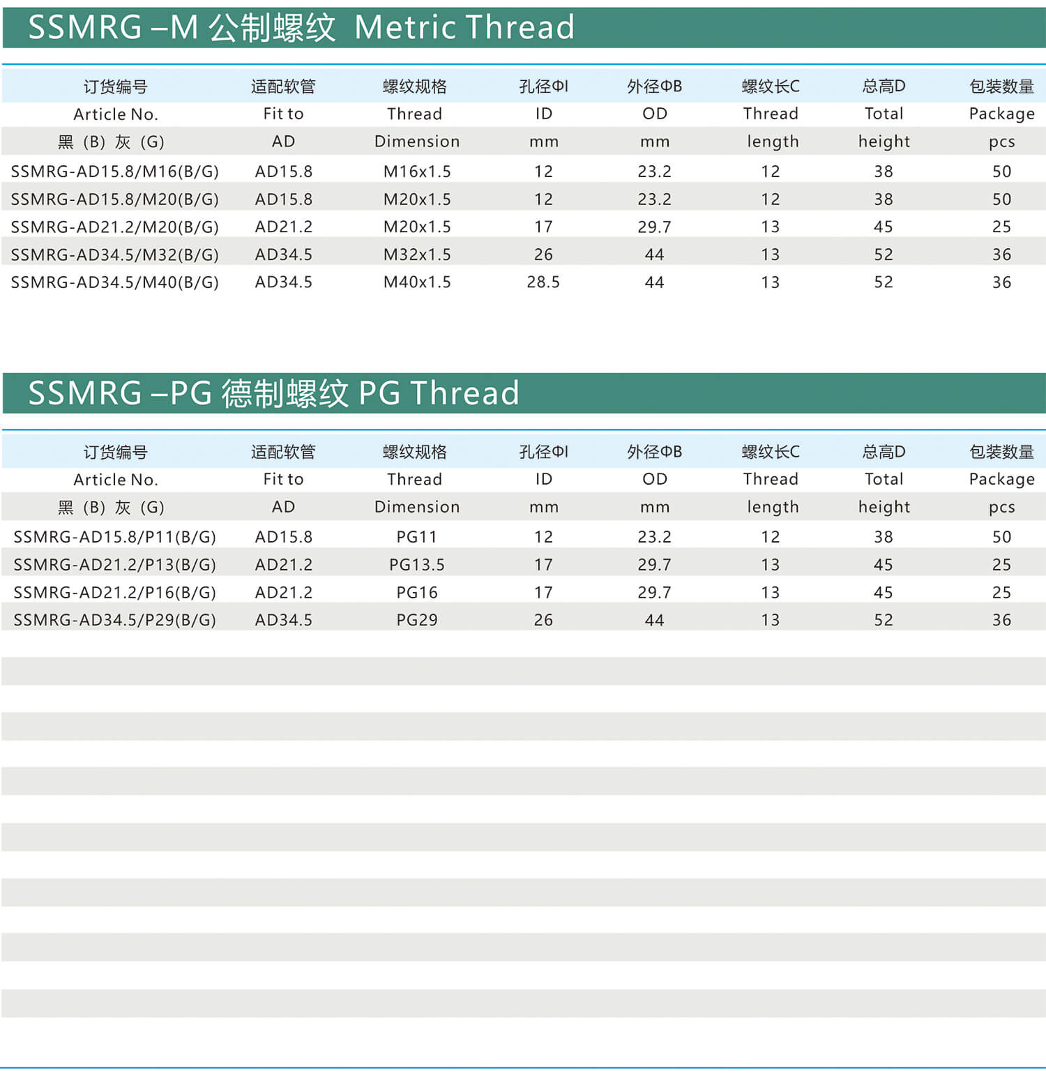 材料:主體塑料部分為PA6,金屬螺紋部分為黃銅鍍鎳