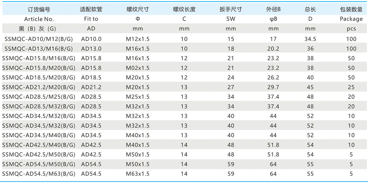 材料:主體塑科部分為PA6,金屬螺紋部分為黃銅鍍鎳