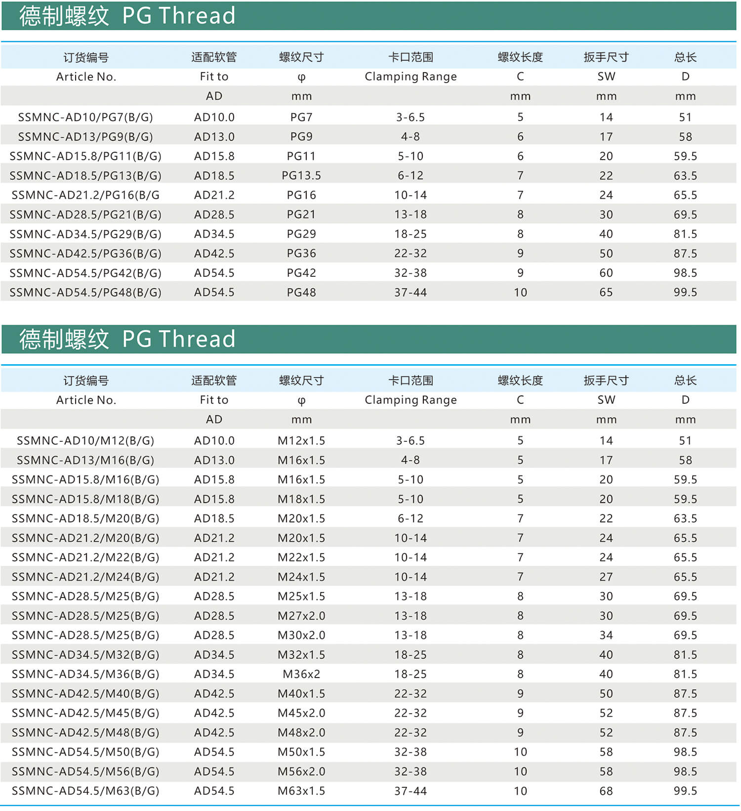 材料:主體塑料部分為PA6,金屬螺紋部分為黃銅鍍鎳